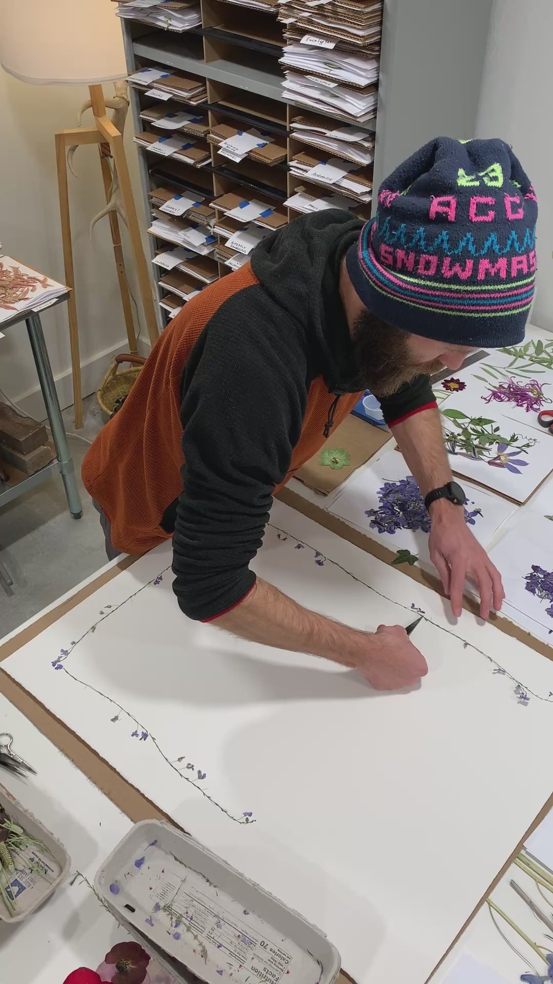 Spring was the second piece I had ever created. For a year, I was eying wild blue flax in a spot in our studio that we had pressed the previous year. I LOVE this flower so much so it became my overall border. After that, I could go on and create the puzzle.
